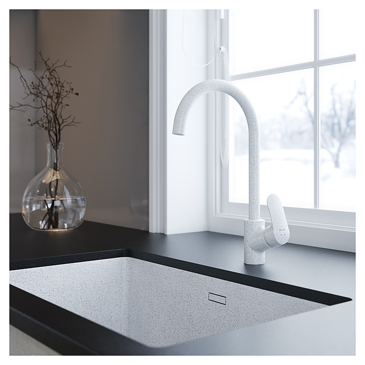 Смеситель для кухни AM.PM Like F8007133 предназначен для установки на кухонную мойку и оснащен более длинным изливом для того, чтобы быть направленным ближе к центру мойки для удобства использования. Коллекция Like отличается мягкими, обтекаемыми формами, а все отдельные элементы изделий идеально сбалансированы и отлично подчеркивают единую концепцию дизайна. Модель оснащена удобной ручкой, высоким, поворотным изливом и керамическим картриджем. Изделие выполнено из высококачественной латуни, которая отличается прочностью, долговечностью и устойчивостью к перепадам температур. Особенности: