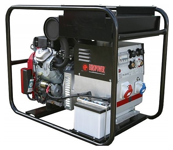 Генератор бензиновый сварочный EUROPOWER EP 300 ХЕ DC предназначен для проведения сварочных работ, однако может также использоваться и как источник резервного энергоснабжения. Модель оснащена четырех тактным бензиновым двигателем Honda GX 690 с электрическим стартером и аккумулятором (без электролита), системой остановки двигателя при недостаточном уровне масла. Корпус выполнен из стальной рамы, которая служит не только для защиты двигателя, но и для удобной транспортировки электростанции. Особенности: