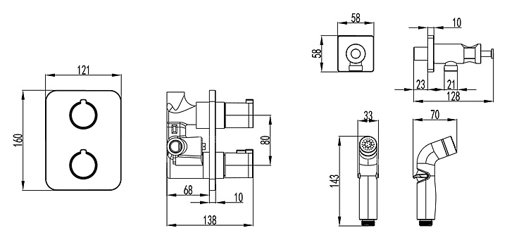 Смеситель для биде с гигиеническим душем LEMARK Yeti LM7820C термостатический, встраиваемый, хром