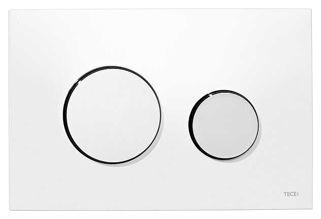 Кнопка смыва TECE TECEloop предназначена для инсталляции унитаза. Аксессуар прямоугольной формы с двумя круглыми клавишами, непосредственно приводящими в действие экономный механизм большого и малого смыва для рационального расхода воды. Особенности: