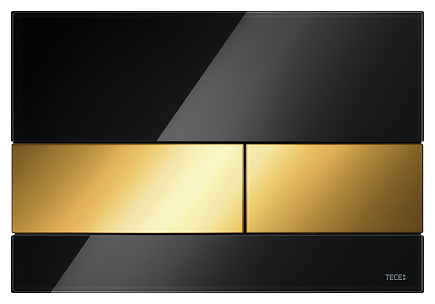Кнопка смыва TECE TECEsquare 9240808, стекло черное, клавиши позолоченные