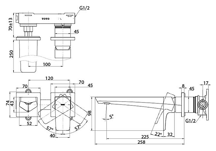 Смеситель для раковины TOTO GC TLG07308R встраиваемый, на 2 отверстия, хром