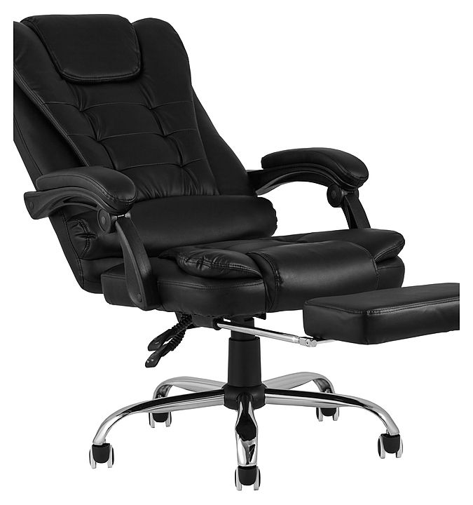 Офисное кресло руководителя TopChairs President черное предназначено для долгой работы за компьютером на даче, дома, а также в офисах. Модель оснащена выдвижной подставкой для ног, подлокотниками, механизмом качания мультиблок и системой регулировки по высоте. Каркас кресла изготовлен из металла, мягкая обивка из экокожи высшего качества. Дополнительные характеристики: