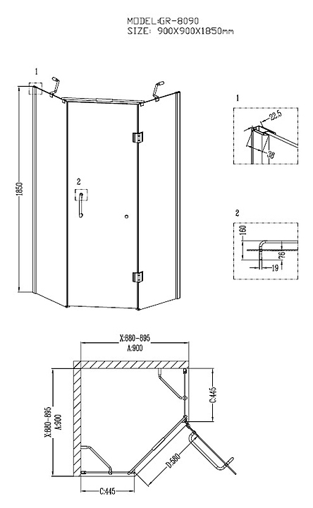 Уголок душевой Grossman Classic GR-8090 90х90 см