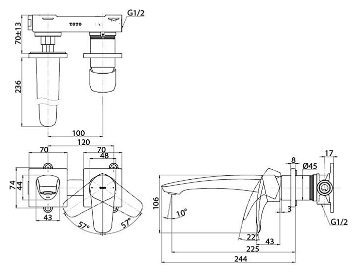 Смеситель для раковины TOTO GC TLG09308R встраиваемый, на 2 отверстия, хром