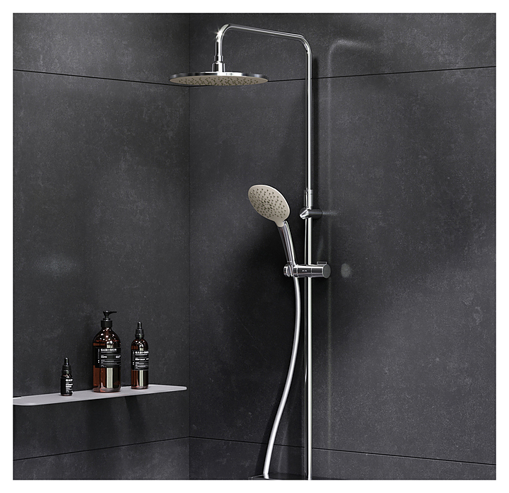 Душевой комплект AM.PM Spirit V2.0 F0770A400 используется в ванных комнатах. Душевые системы Spirit V2.0 добавляют совершенно новое ощущение к приему душа. Коллекция Spirit V2.0 отличается плавными, изящными формами, а все отдельные элементы изделий идеально сбалансированы и отлично подчеркивают единую концепцию дизайна. Модель оснащена удобной ручкой, верхним и ручным душем, термостатическим картриджем, стойкой. Изделие выполнено из высококачественной латуни, которая отличается прочностью, долговечностью и устойчивостью к перепадам температур. В комплект поставки входят верхний и ручной душ с держателем, стойка, шланг и смеситель. Особенности: