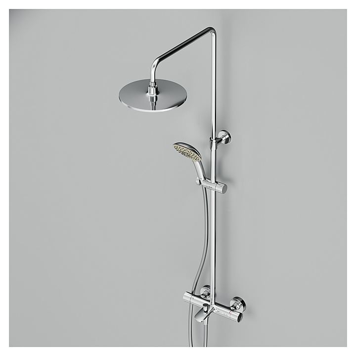 Душевой комплект AM.PM Spirit V2.0 F0770A510 используется в ванных комнатах. Душевые системы Spirit V2.0 добавляют совершенно новое ощущение к приему душа. Коллекция Spirit V2.0 отличается плавными, изящными формами, а все отдельные элементы изделий идеально сбалансированы и отлично подчеркивают единую концепцию дизайна. Модель оснащена удобной ручкой, изливом, верхним и ручным душем, термостатичеким картриджем, стойкой. Изделие выполнено из высококачественной латуни, которая отличается прочностью, долговечностью и устойчивостью к перепадам температур. В комплект поставки входят верхний и ручной душ с держателем, стойка, шланг, смеситель, эксцентрики. Особенности: