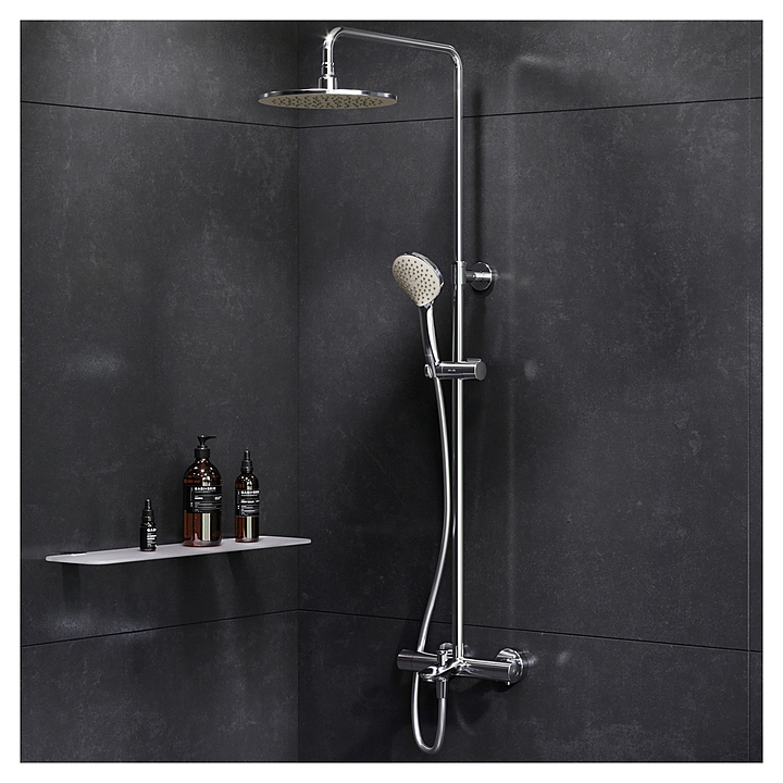 Душевой комплект AM.PM Gem F0790510 используется в ванных комнатах. Душевые системы AM.PM добавляют совершенно новое ощущение к приему душа. Коллекция Gem отличается брутальными формами, а все отдельные элементы изделий идеально сбалансированы и отлично подчеркивают единую концепцию дизайна. Модель оснащена удобной ручкой, изливом, верхним и ручным душем, термостатическим картриджем. Изделие выполнено из высококачественной латуни, которая отличается прочностью, долговечностью и устойчивостью к перепадам температур. В комплект поставки входят ручной душ с держателем, стойка, шланг и смеситель. Особенности: