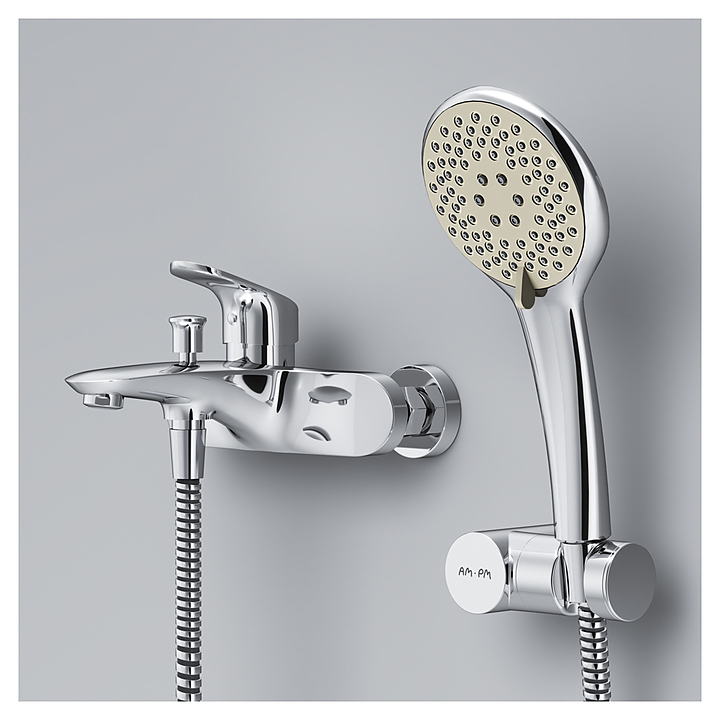 Душевой комплект AM.PM Like F0118000 используется в ванных комнатах. Душевые системы AM.PM добавляют совершенно новое ощущение к приему душа. Коллекция Like отличается мягкими, обтекаемыми формами, а все отдельные элементы изделий идеально сбалансированы и отлично подчеркивают единую концепцию дизайна. Модель оснащена смесителем, удобной ручкой, аэратором, ручным душем и керамическим картриджем. Изделие выполнено из высококачественной латуни, которая отличается прочностью, долговечностью и устойчивостью к перепадам температур. В комплект поставки входят ручной душ с держателем, смеситель, шланг, эксцентрики. Особенности: