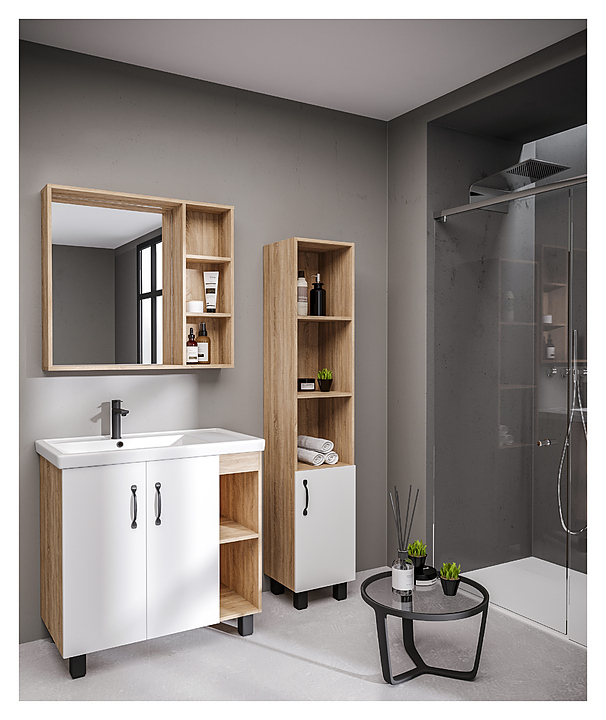 Тумба Grossman Флай 108001 80 см отлично дополнит интерьер любой ванной комнаты. Изделие устанавливается на ножки, что позволяет защитить конструкцию от воздействия влаги в случае намокания пола, а также облегчает уборку. Корпус изготовлен из ЛДСП, которая отличается долговечностью и экологичностью, а также предохраняет от загрязнения и защищает от влаги. Фасад выполнен из МДФ в матовой пленке, которая придает изделию красивый внешний вид. Тумба может использоваться вместе с раковиной Kirovit Фостер 80 см. В комплект поставки входит набор креплений. Особенности: