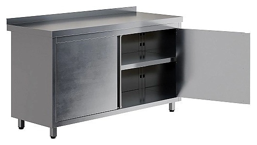 Производственный стол Restoinox СПЗР-14/6-Б серии 600 предназначен для обработки продуктов питания, раскатки теста и хранения кухонного инвентаря, также для размещения малогабаритного оборудования на предприятиях общественного питания и торговли. Модель оснащена регулируемыми по высоте опорами и сплошной полкой. Ножки выполнены из квадратной трубы 40х40 мм из нержавеющей стали Aisi 430, корпус, рабочая поверхность и полка - из нержавеющей стали Aisi 430, задняя стенка - из оцинкованной стали, столешница усилена листом ЛДСП. Особенности: