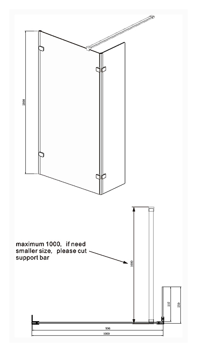 Перегородка душевая Ambassador WALK-IN 15031106 100х25х200 см