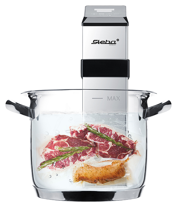 Аппарат Sous Vide Steba SV 120 Professional используется в частных домах и квартирах для приготовления пищи в герметичных пакетах в горячей воде при невысоких температурах, что позволяет сохранить в продуктах все питательные вещества, витамины и минералы и обеспечить насыщенный вкус мяса и овощей. Модель оснащена электронной панелью управления с дисплеем. Корпус выполнен из нержавеющей стали. Особенности: