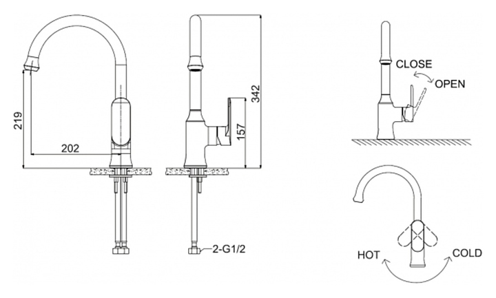 Смеситель для кухни BRAVAT Opal F7125183CP-RUS с высоким поворотным изливом, хром