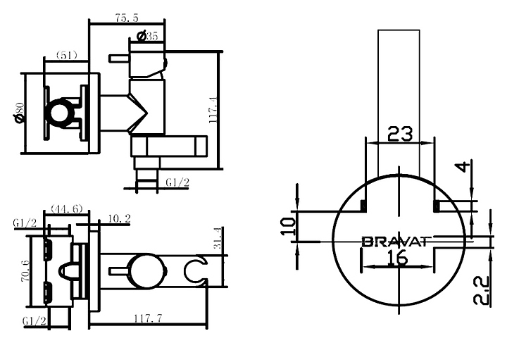 Смеситель для биде BRAVAT Eler D9137CP-RUS с гигиеническим душем, хром