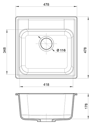 Кухонная мойка GranFest Quarz GF-Z48 предназначена для установки в частных домах, квартирах, офисах, отелях, гостиницах и на различных предприятиях для мытья столовых принадлежностей, посуды, приборов, инвентаря и продуктов питания. Изделие выполнено из кварца, который устойчив к образованию пятен и воздействию высоких температур. Дополнительные характеристики: