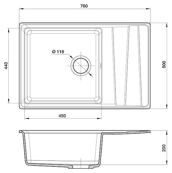 Кухонная мойка GranFest Level GF-LV-760L предназначена для установки в частных домах, квартирах, офисах, отелях, гостиницах и на различных предприятиях для мытья столовых принадлежностей, посуды, приборов, инвентаря и продуктов питания. Модель оснащена крылом для сушки посуды. Изделие выполнено из кварца, который устойчив к образованию пятен и воздействию высоких температур. Дополнительные характеристики: