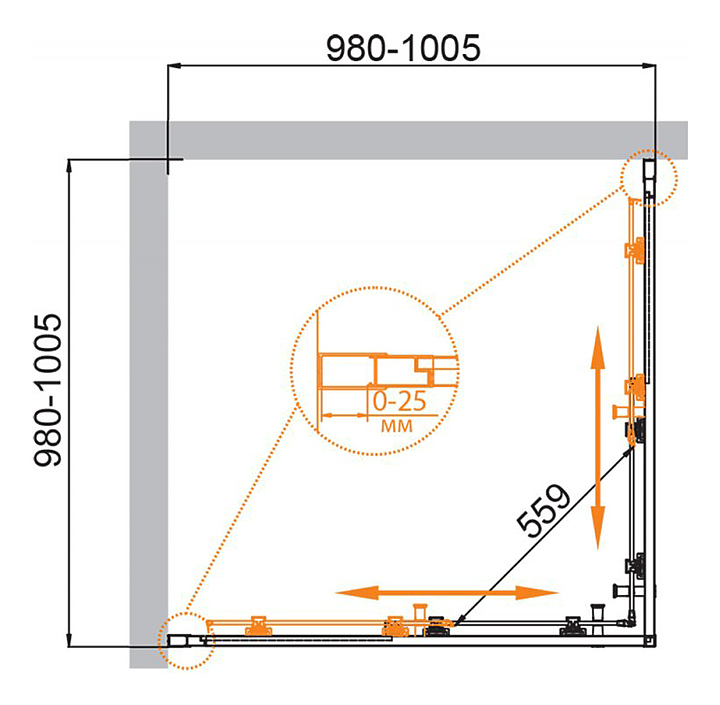 Уголок душевой CEZARES MOLVENO-A-2-100-P-Cr 100х100х195 см