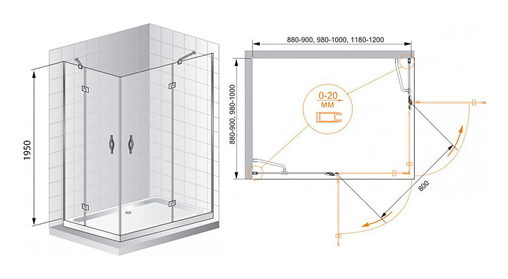 Уголок душевой CEZARES BERGAMO-W-AH-2-100/90-C-Cr-L 100х90х195 см