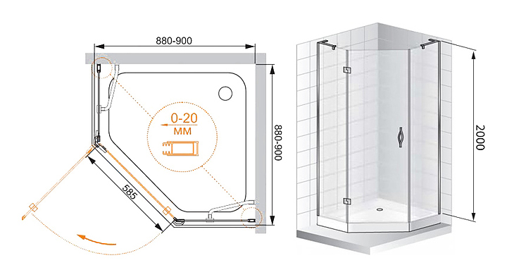 Уголок душевой CEZARES BERGAMO-W-P-1-90-C-Cr-R-IV 90х90х200 см