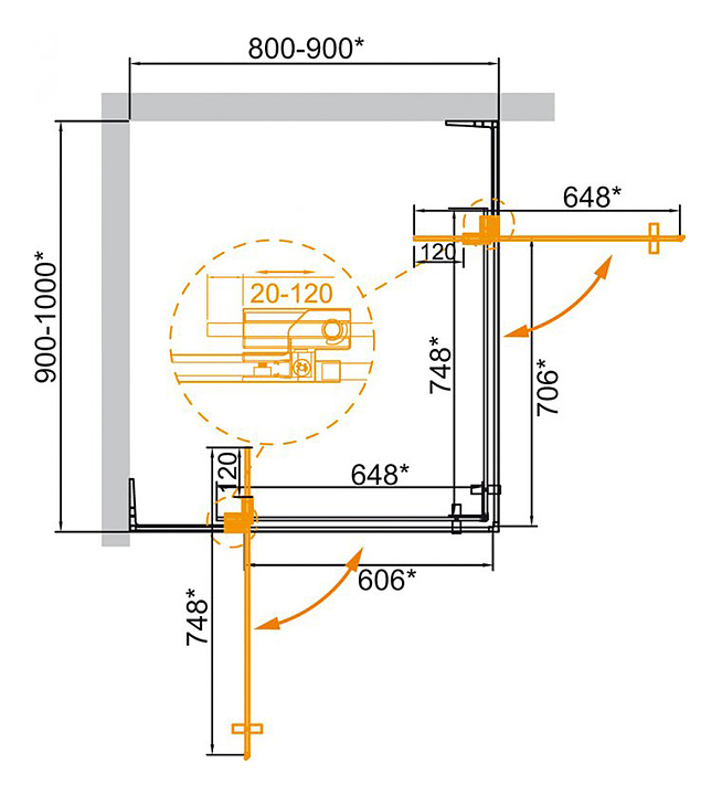 Уголок душевой CEZARES SLIDER-AH-2-80/90-90/100-C-Cr
