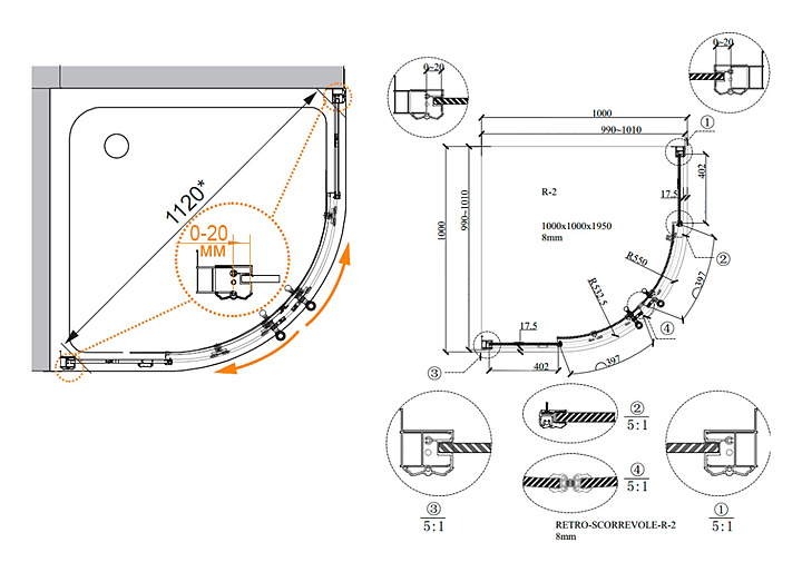 Душевой уголок CEZARES RETRO-A-R-2-100-SCORREVOLE-CP-Br предназначен для использования в ванных комнатах. Благодаря угловой конструкции в форме четверти круга модель можно вписать даже в ванные комнаты небольшой площади. Кабина оснащена двумя раздвижными дверями. Полотно двери выполнено из прочного закаленного стекла, а профиль из анодированного алюминия, который отличается устойчивостью к коррозии, долговечностью и износостойкостью. Поддон в комплект поставки не входит и приобретается отдельно. Особенности: