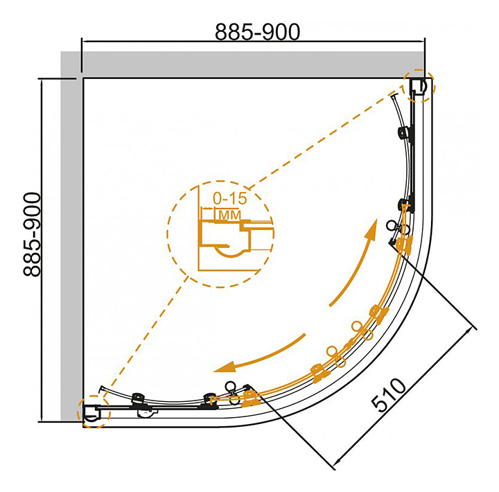 Уголок душевой CEZARES GIUBILEO-R-2-90-SCORREVOLE-CP-G 90х90х195 см