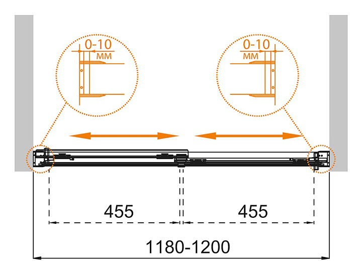 Дверь душевая CEZARES TANDEM-SOFT-BF-2-120-P-Cr 120х190 см, в нишу, раздвижная