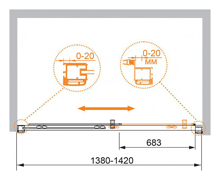Дверь душевая CEZARES ANIMA-W-BF-1-140-C-Cr 140х195 см, в нишу, раздвижная