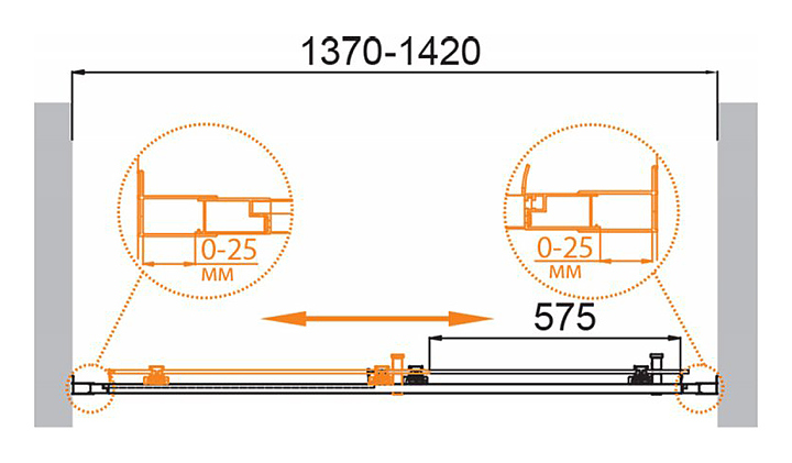 Дверь душевая CEZARES MOLVENO-BF-1-140-C-Cr-IV 140х195 см, в нишу, раздвижная