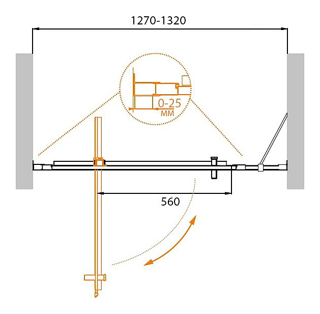 Дверь душевая CEZARES MOLVENO-BA-11-100+30-C-Cr-IV 130х195 см, в нишу, распашная