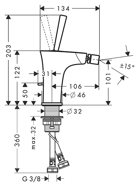 Смеситель для биде Hansgrohe PuraVida 15270400