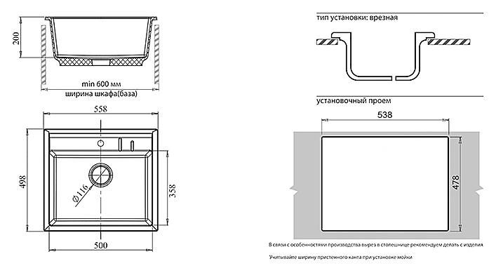 Кухонная мойка GranFest Quadro GF-Q560 предназначена для установки в частных домах, квартирах, офисах, отелях, гостиницах и на различных предприятиях для мытья столовых принадлежностей, посуды, приборов, инвентаря и продуктов питания. Изделие выполнено из мрамора, который устойчив к образованию пятен и воздействию высоких температур. Особенности: