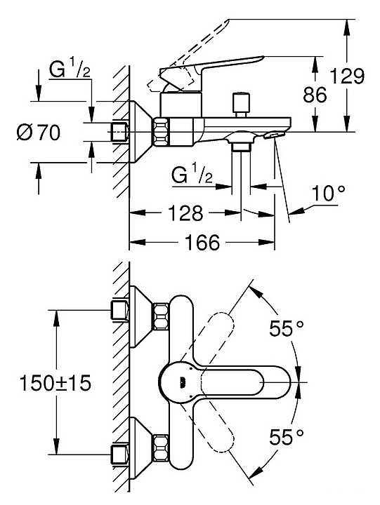 Смеситель для ванны и душа настенный Grohe BauEdge 23334000