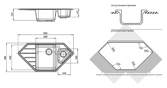 • Врезная установка