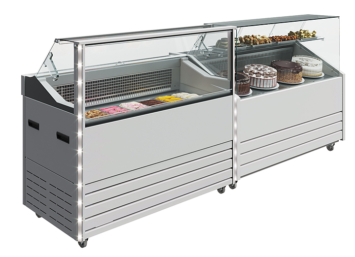 Витрина для мороженого Carboma IC72 SL 1,3-1 используется на предприятиях общественного питания и торговли для охлаждения, хранения, демонстрации и продажи мороженого. Модель оснащена поворотно-откидной створкой, встроенными ручками и колесами. Cтолешница выполнена из шлифованной нержавеющей стали, передняя панель - из крашеной стали, створка - из плексигласа, корпус покрыт пенополиуретановой теплоизоляцией. Гастроемкости для мороженого в комплект поставки не входят и приобретаются отдельно. Особенности: