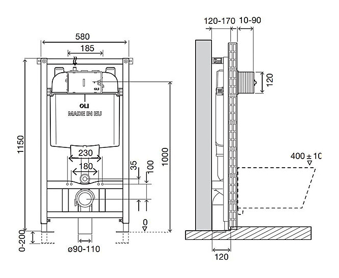Система инсталляции для унитаза OLI OLI74 PLUS S90 SANITARBLOCK OLIpure 880785, механика