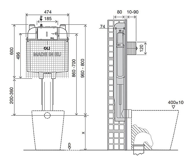 Бачок скрытого монтажа OLI OLI74 PLUS, пневматика предназначен для установки напольных унитазов. Изделие выполнено из полипропилена, который отличается высокой прочностью и термостойкостью. Комплектация: