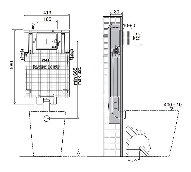 Бачок скрытого монтажа OLI OLI80 600051, механика
