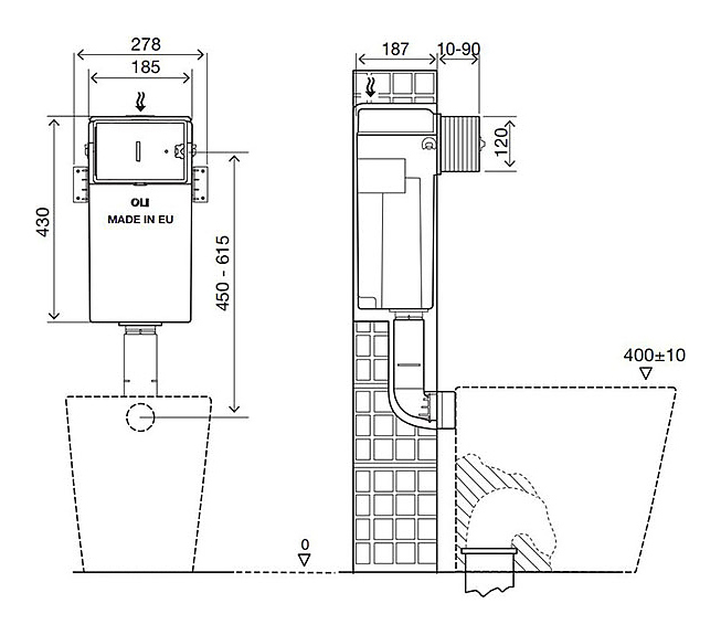 Бачок скрытого монтажа OLI QUADRA PLUS, пневматика предназначен для установки напольных унитазов. Комплектация: