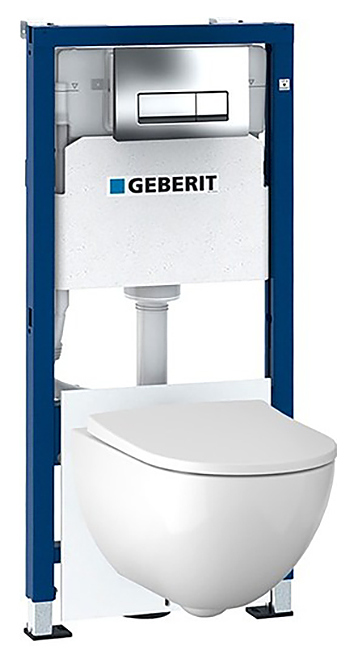 Подвесной унитаз с инсталляцией Geberit Acanto 500.128.21.A выполнен в современном стиле. Благодаря подвесной конструкции унитаз не занимает много места в помещении, а свободное пространство под чашей делает уборку в ванной комнате гораздо легче. Безободковое исполнение позволяет предотвратить скопление бактерий и грязи на внутренней поверхности чаши и обеспечивает ее чистоту и гигиеничность использования. Изделие выполнено из санфарфора, который обладает повышенной прочностью и устойчивостью к негативным внешним факторам, а также долгое время сохраняет идеальную белизну и не впитывает запахи и грязь, сиденье - из дюропласта, отличающегося повышенной устойчивостью к механическим воздействиям, влажности и средствам дезинфекции, а также антибактериальным эффектом, петли - из металла, кнопка смыва - из пластика. В комплект поставки входят унитаз 500.600.01.2 с сиденьем с крышкой 500.605.01.2, инсталляция 458.128.21.1 с звукоизоляцией и клавишей хромглянцевой, 2 болта-держателя для унитаза и монтажный уголок. Особенности: