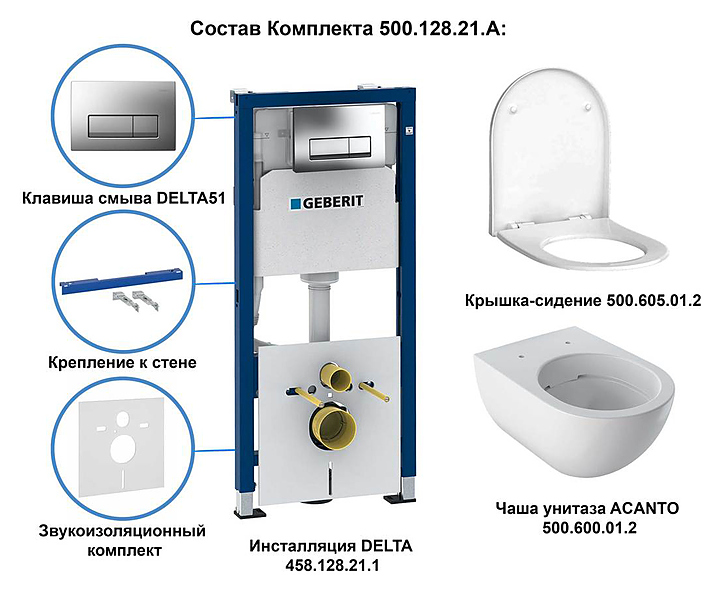 Унитаз подвесной с инсталляцией и сиденьем Geberit DELTA Acanto 500.128.21.A