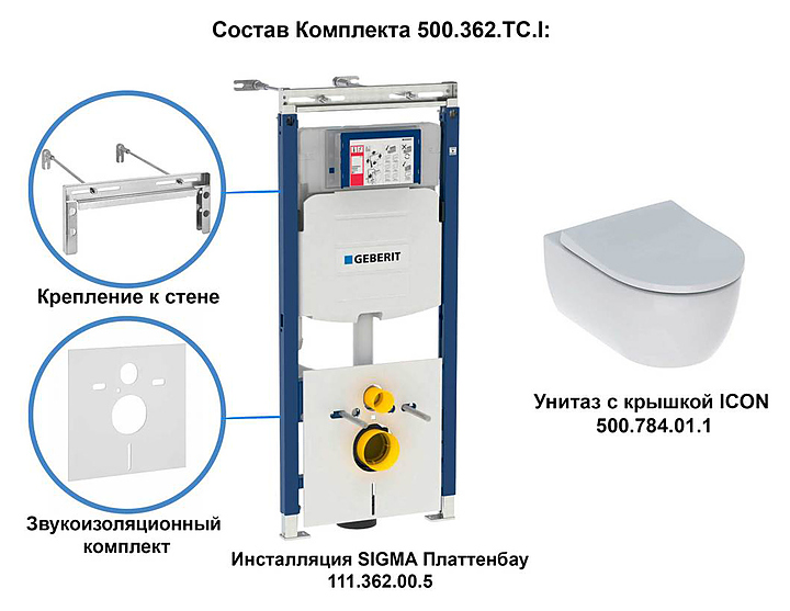 Унитаз подвесной с инсталляцией и сиденьем Geberit ICON 500.362.TC.I