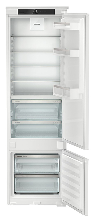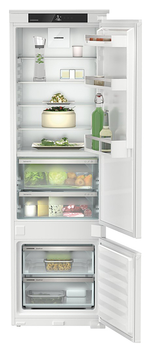 Встраиваемый холодильник Liebherr ICBSd 5122 Plus BioFresh класса Comfort предназначен для заморозки, охлаждения и длительного хранения продуктов и полуфабрикатов в частных домах, квартирах, отелях и офисах. Модель оснащена сенсорным экраном, индикаторами температуры в холодильном и морозильном отделении, фильтром с активированным углем и дверцей со сменным уплотнителем. Задняя стенка выполнена из нержавеющей стали, полки на двери - из пластмассы, полки в холодильном и морозильном отделениях - из стекла, дверь - из стали. Холодильная камера: