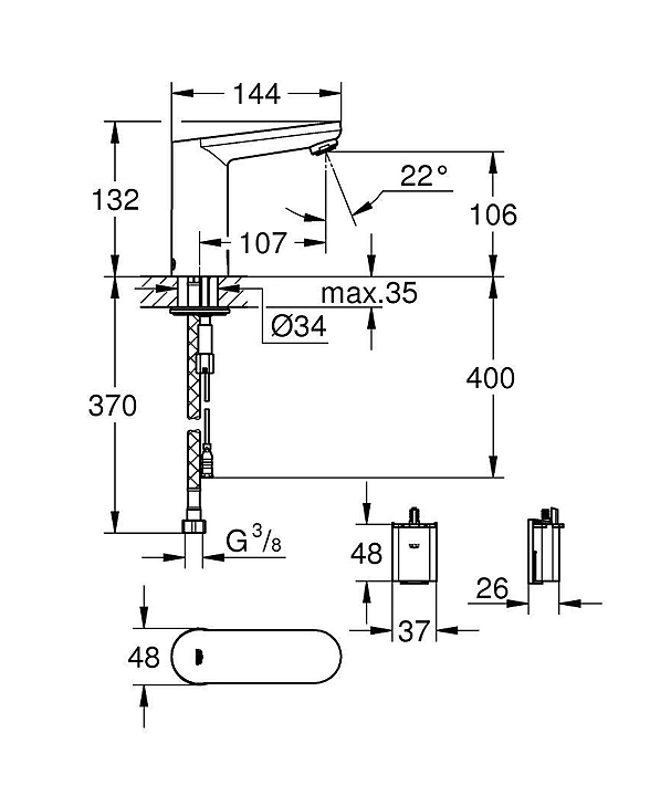 Смеситель для раковины сенсорный Grohe Eurosmart Cosmopolitan Е 36330001 предназначен для установки на умывальник. Модель является частью коллекции Eurosmart Cosmopolitan, что позволяет выдержать дизайн кухни и ванной комнаты в едином стиле и оснащена инфракрасным датчиком для двусторонней связи для мониторинга, настройки и сервисного обслуживания и со встроенным электромагнитным клапаном. Изделие выполнено из высококачественной латуни, отличающейся прочностью, долговечностью и устойчивостью к перепадам температур. Особенности: