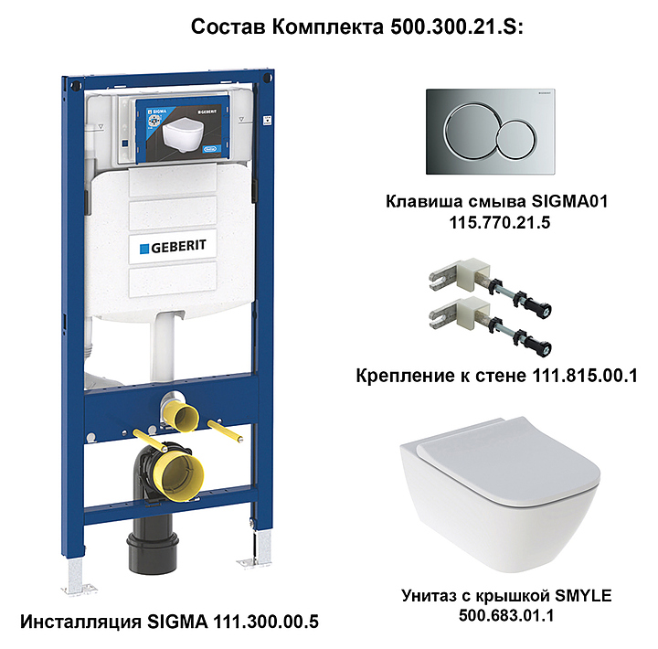 Подвесной унитаз с инсталляцией Geberit SMYLE 500.300.21.S выполнен в современном стиле. Благодаря подвесной конструкции унитаз не занимает много места в помещении, а свободное пространство под чашей делает уборку в ванной комнате гораздо легче. Безободковое исполнение позволяет предотвратить скопление бактерий и грязи на внутренней поверхности чаши и обеспечивает ее чистоту и гигиеничность использования. Унитаз выполнен из санфарфора, который обладает повышенной прочностью и устойчивостью к негативным внешним факторам, а также долгое время сохраняет идеальную белизну и не впитывает запахи и грязь. В комплект поставки входят унитаз 500.683.01.1, инсталляция 111.300.00.5, сиденье с крышкой с системой плавного опускания, клавиша 115.770.21.5 и крепление к стене. Особенности:
