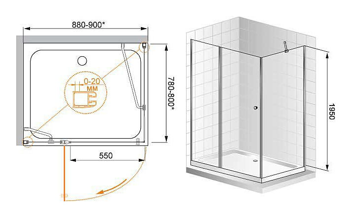 Уголок душевой CEZARES ELENA-W-AH-1-90/80-C-Cr 90х80х195 см