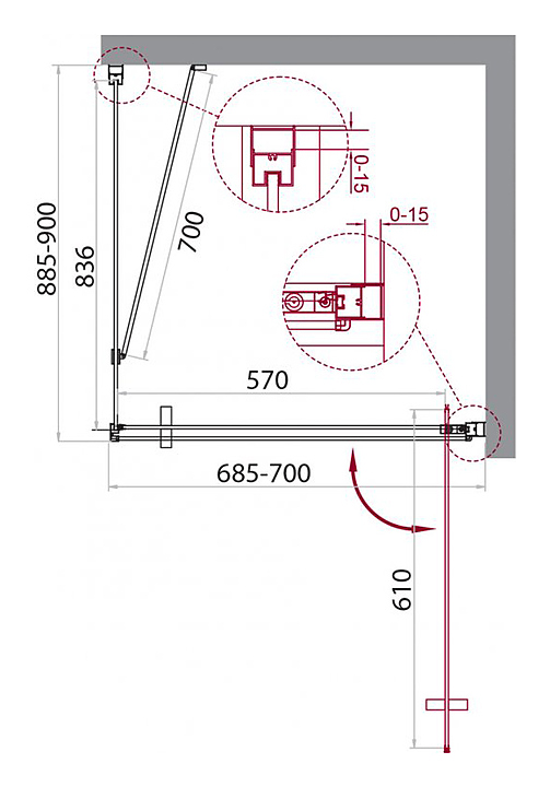 Душевой уголок CEZARES MARMI-AH-1-70/90-C-Cr предназначен для использования в ванных комнатах. Кабина оснащена одной распашной дверью. Полотно двери выполнено из прочного закаленного стекла, а профиль из анодированного алюминия, который отличается устойчивостью к коррозии, долговечностью и износостойкостью. Поддон в комплект поставки не входит и приобретается отдельно. Особенности: