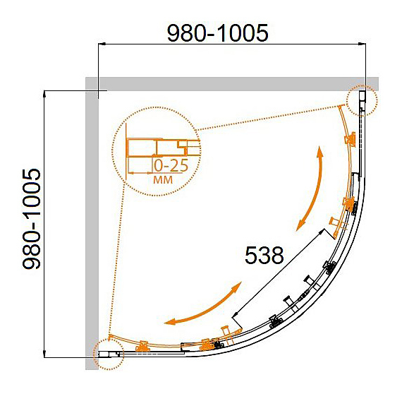 Уголок душевой CEZARES MOLVENO-R-2-100-P-Cr 100х100х195 см