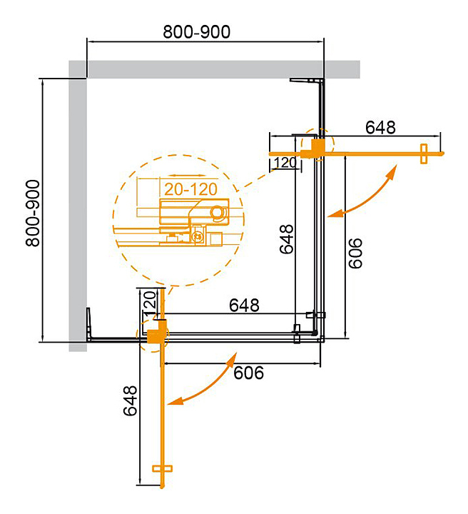 Уголок душевой CEZARES SLIDER-A-2-80/90-C-NERO